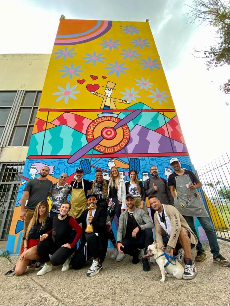 Ángel Carabajal y el elenco de “América Show”, estuvieron presentes en la Sala de Convención Municipal acompañando al pintor Mario Lange, quien realizó un mural en reconocimiento al ganador del Carlos de Oro 2021.